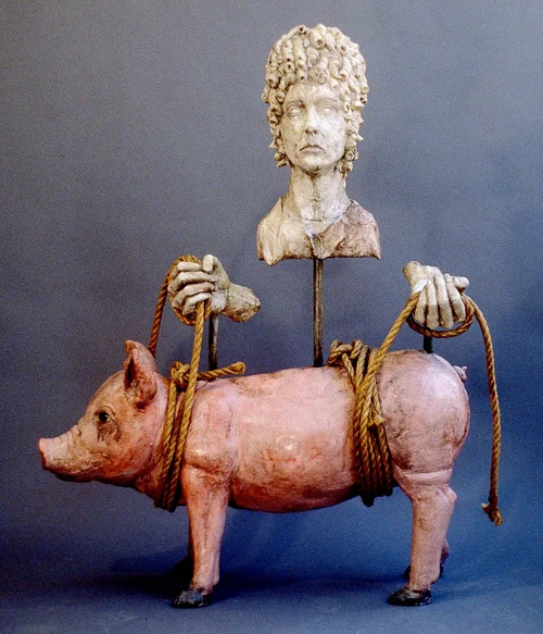 34 x 51 x 30” · ceramic + mixed media · 1999